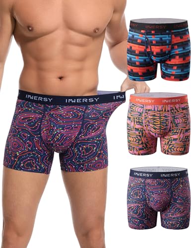 INNERSY Mäns kalsonger snabbtorkande kalsonger män med gylf andas retroshorts 3-pack, 3 färgglada mönster, L