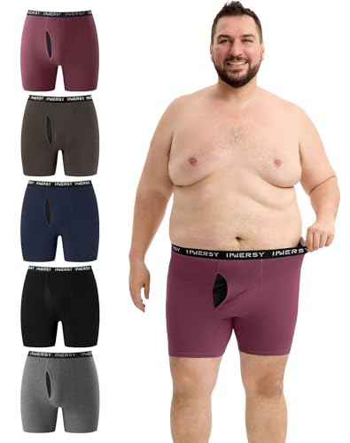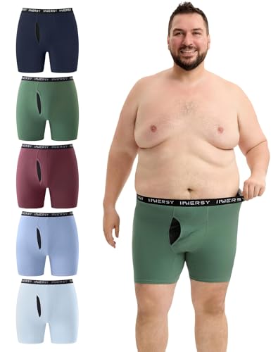 INNERSY Stora storlekar, boxershorts, herr, bomull, kalsonger, män, med gylf, underkläder, XXL-6XL, 5-pack, 5 sport flerfärgad, 5XL plus size