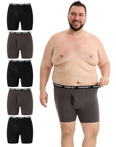 INNERSY Stora storlekar, boxershorts, herr, bomull, kalsonger, män, med gylf, underkläder, XXL-6XL, 5-pack, 2 grå/3 svart, 5XL plus size