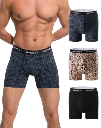 INNERSY Boxershorts herr bomull kalsonger män med gylf färgglada retroshorts sport underkläder 3-pack, Svart/leopard/svart leopard, S