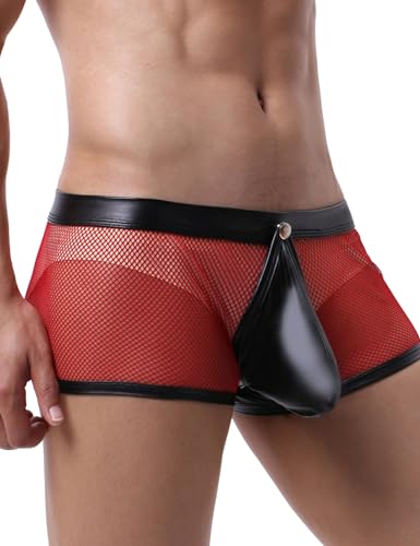 comeondear Sexiga boxershorts män PU-läder underkläder spets kalsonger sissy underkläder stora storlekar mesh sexiga underkläder erotiska trosor genomskinliga klubbkläder trosor badbyxor boxer briefs
