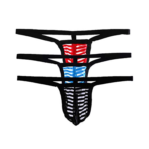 Casey Kevin herrstringkalsonger stringtrosa män transparent sexiga underkläder män mesh kalsonger (3-pack), B1-svart, röd, blå, XXL