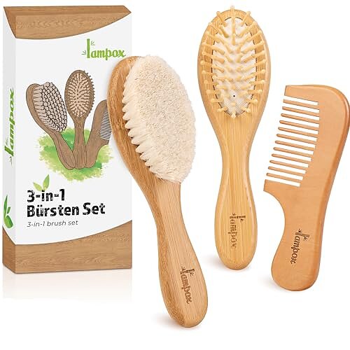 lampox Baby Borste Kam Set Naturligt Trä Mjuk Get Hår