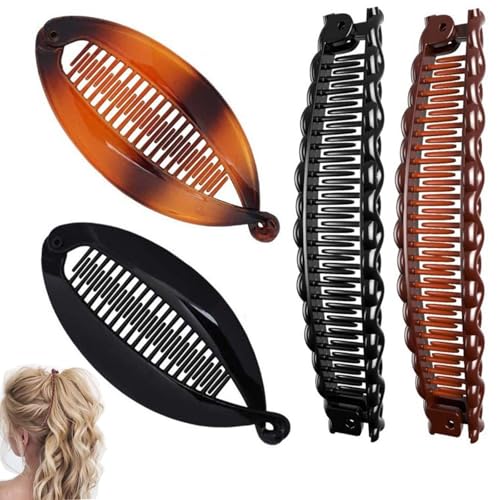 Gammaeon bananklämma, 4 st bananhårklämmor dubbel kam långt hår klämma kammar fisksvans hästsvans banan klämma hårtillbehör för vardags- och bröllopsstilar