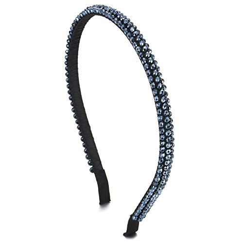 glittrande tre-rad blå mörk kristall pärla hårkedja kam hår krona pannband hårband fest bal