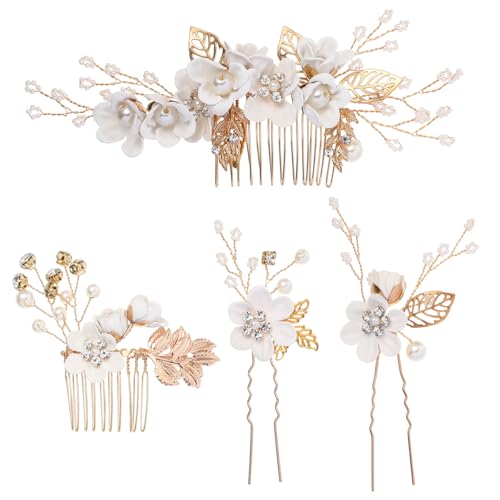 4 st bröllop hårtillbehör brud hår kam hårklämma med pärlor strass hårklämmor brud U-formade hårnålar för kvinnor och flickor