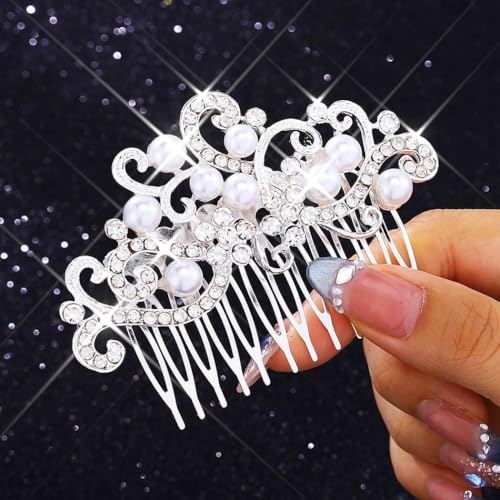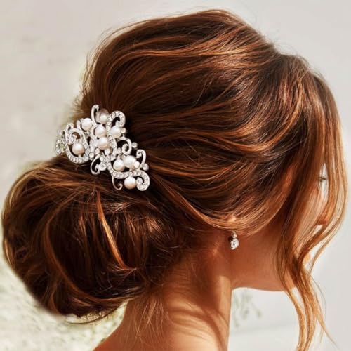 5 delar pärla bröllop hår sida kam kristall brud bröllop hår kam U-formad brud bröllop hårnålar strass hårtillbehör pärla blomma hår kam för kvinnor och flickor (silver)