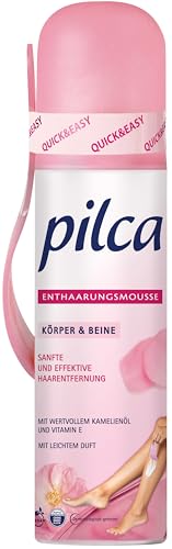 pilca hårborttagningsmousse "Kropp", 150 ml sprayflaska, mild hårborttagning för ben, armar, armhålor och bikinizon, mousse med kameliaolja och E-vitamin, inkl. precisionsspatel