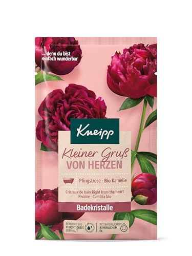 Kneipp badkristaller liten hälsning av hjärtan, badsalt med djupsalt och kombinationen av pionextrakt och närande kameliaolja, ett ögonblick av trygghet, 60 g