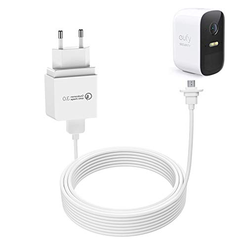 Eufy 2C/2C Pro laddningskabel BECEMURU Quick Charge 3.0 strömförsörjning med 30 fot/9 m väderbeständig kabel för Eufy 2C/2C Pro-kamera (vit) (1 pack)