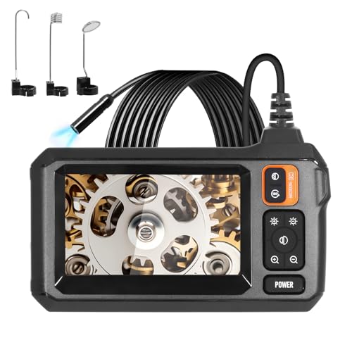 Industriell endoskopkamera med 5 m flexibel kabel, 1080P HD 8 mm IP67 vattentät kamera med 4,3 tums IPS-skärm, 8 LED-lampor, ingen app krävs