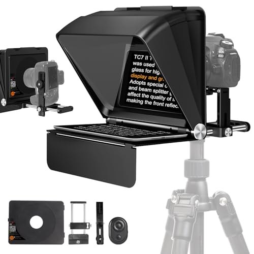 Leeventi Teleprompter kompatibel med iPad, surfplatta, smartphone och DSLR-kamera, kontroll via fjärrkontroll eller app, kompatibel med Android och IOS, perfekt för videoinspelning (version 4.0)