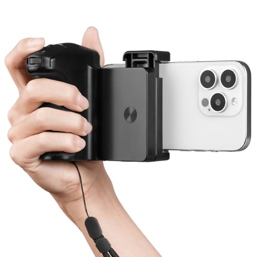HOTUT Smartphone handgreppshållare stabilisator med avtagbar Bluetooth-kamera fjärrkontroll, smartphone-grepphållare, stativmontering med kall sko för iPhone Android video och selfie-film