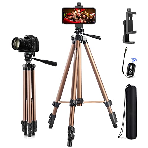 Telefonstativ, 51 tum passande videoinspelningskamera stativ med mobiltelefon rotationsfäste och Bluetooth-fjärrkontroll kompatibel med iPhone/Android/DSLR-kamera/actionkamera GoPro – champagne