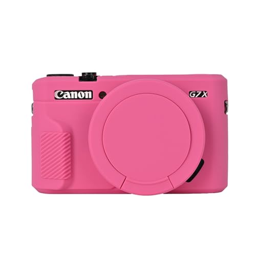 G7X Mark II kameraväska, mjukt silikonskyddsfodral med linslock för Canon PowerShot G7X Mark II kamera, Rosa röd
