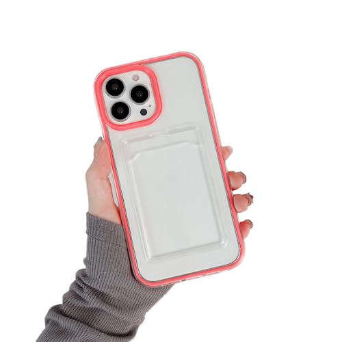 WDTURNS För iPhone 14 Pro Max-fodral, Kortförvaring, [Anti-gulning] [Kamera & Skärmskydd]- Stötsäker och flexibel TPU Silikon - Rosa röd