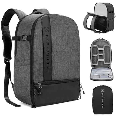 K&F koncept kameraryggsäck 25 l kameraväskor för fotografer kamerafodral med stor kapacitet med regnskydd, 15,6 tums laptopfack kompatibelt med Canon/Nikon/Sony/DJI Mavic drönarryggsäck