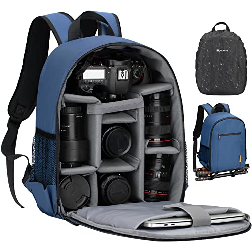 TARION Kameraryggsäck liten fotoryggsäck kameraväska: Kameraryggsäck kompakt kameraryggsäck lätt foto ryggsäckar spegelreflex med vattentätt regnskydd för spegelreflexkameror, blå, S