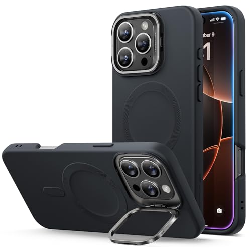 ESR Silikonfodral med hållare för iPhone 16 Pro Max, kompatibelt med MagSafe, inbyggt kamerastativ, magnetfodral, molnserie, svart