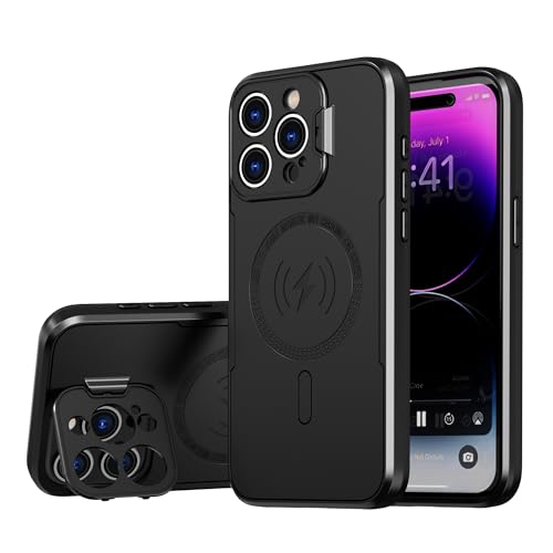Generic CFYJ iPhone 15 Pro Magnetiskt Skyddsskal med Justerbart Stashstativ, skydd av militärkvalitet, inbyggt kamerastativ, magnetiskt telefonfodral för iPhone 15 Pro, svart