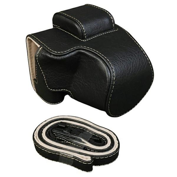 Canon EOS R100 / R50 kameraväska med litchistruktur, vegansk läderväska, skyddsfodral med axelrem - Svart