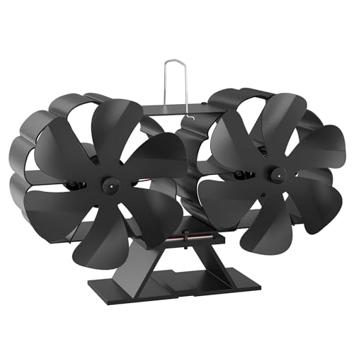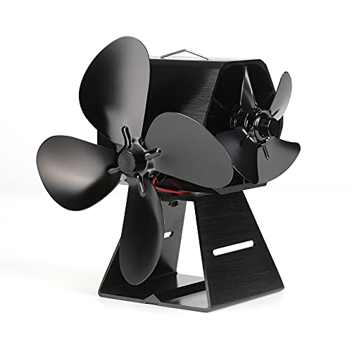 CRSURE Dubbelmotorig kaminfläkt, ugnsfläkt, 4-blads ugnsfläkt, värmedriven, träbrännare, brandfläkt, miljövänlig och effektiv för träbrännare/öppen spis