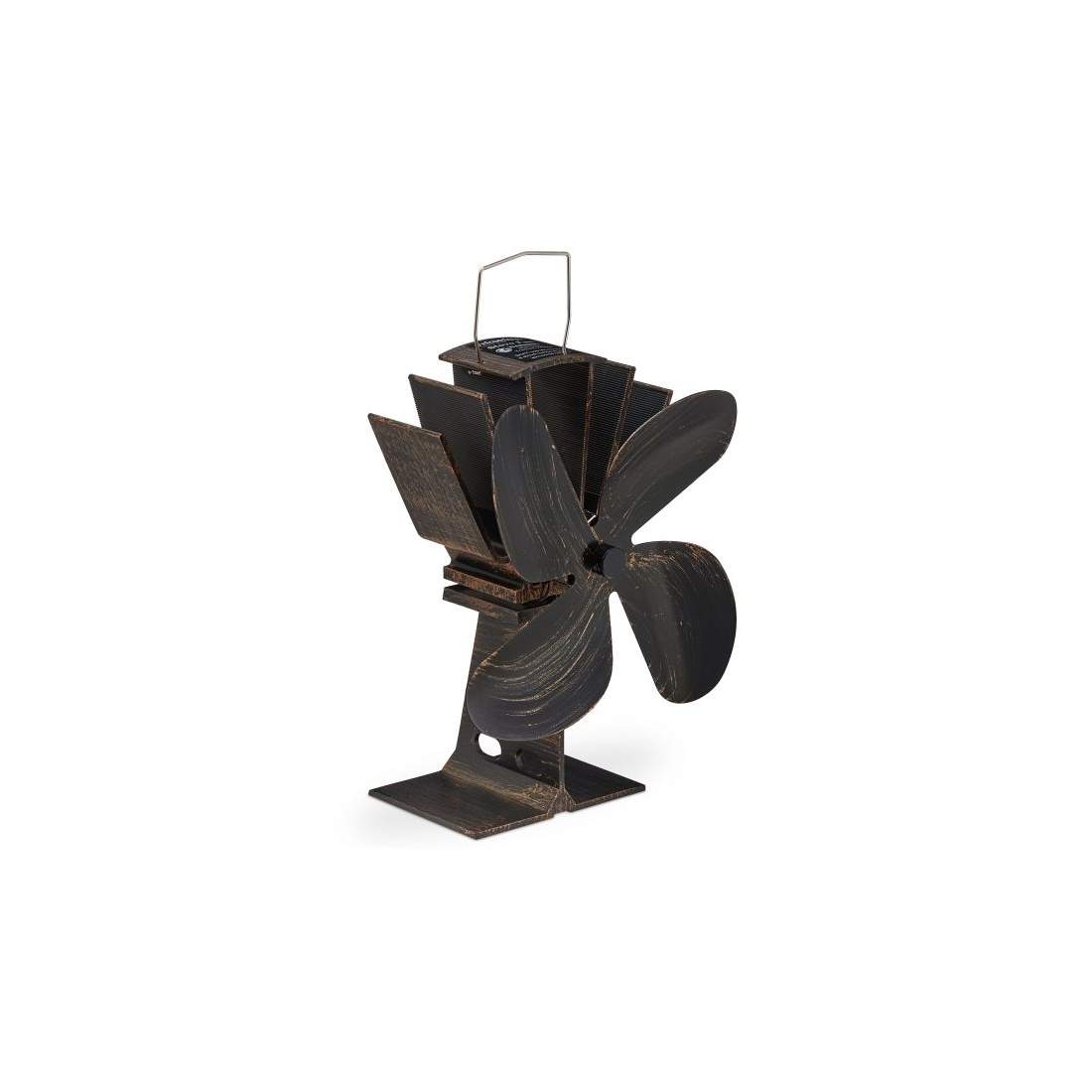 Relaxdays Ugnsfläkt utan el, lågt brus, för eldstad och ugn, värmedriven, 4 blad, kaminfläkt, brons