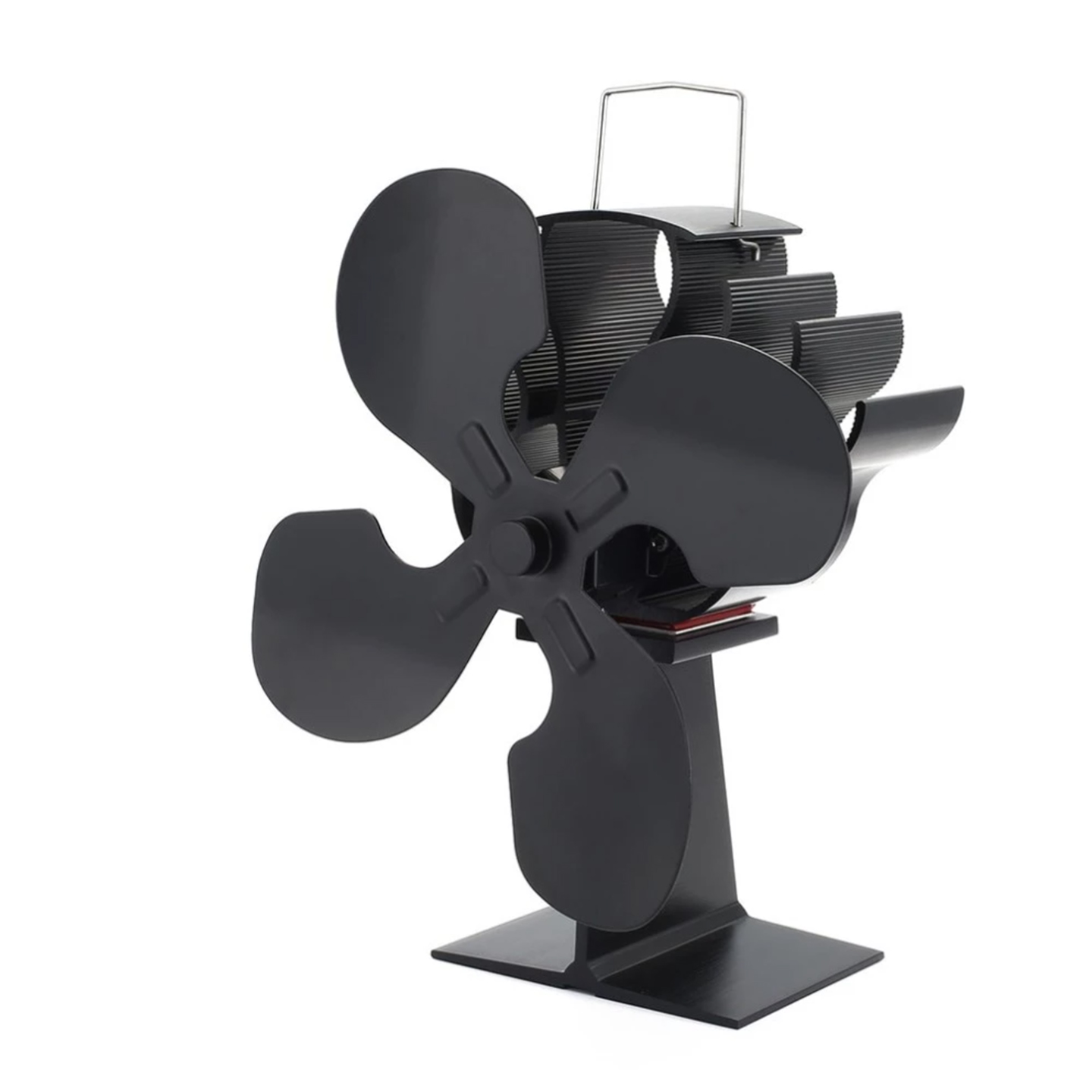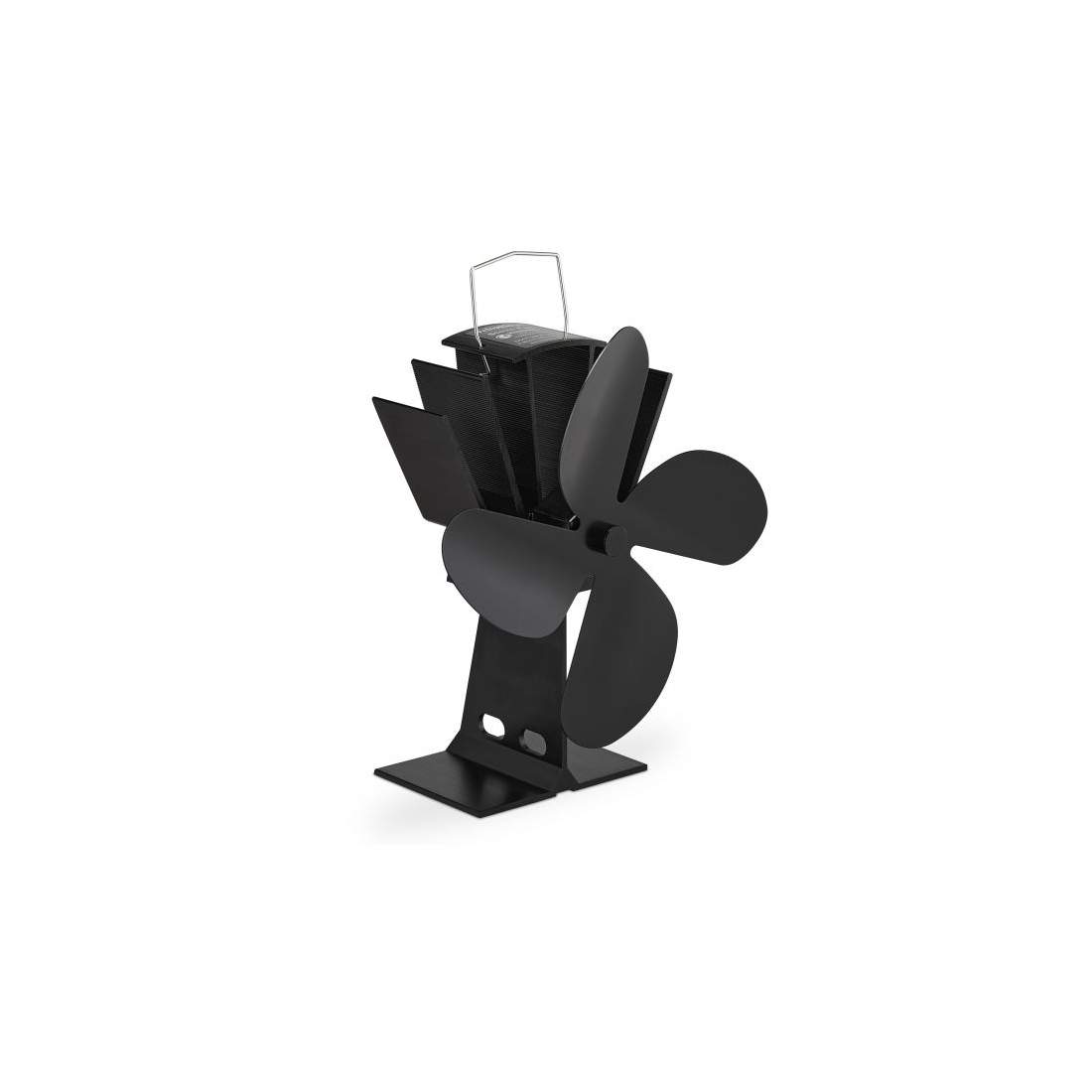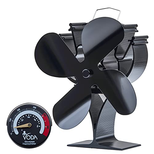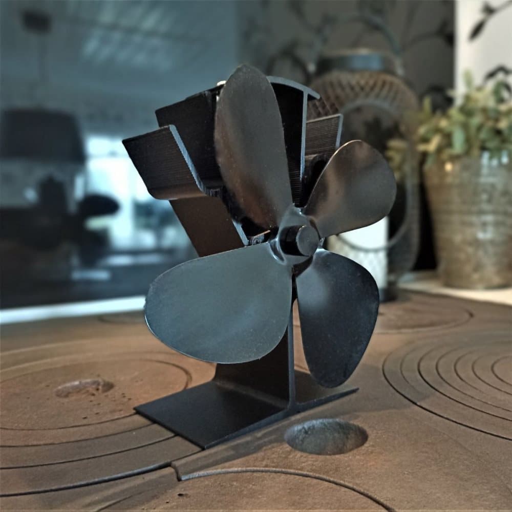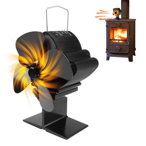 Kaminfläkt, vedbrännarfläkt, eldstadsfläkt med termometer, 4 blad, för vedeldad spis