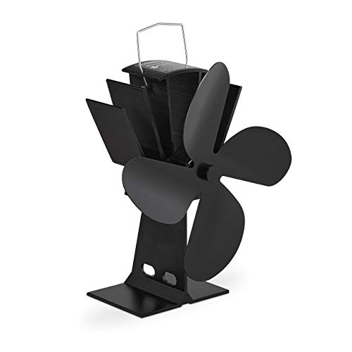 Relaxdays Ugnsfläkt utan el, lågt brus, för eldstad och ugn, värmedriven, 4 blad, kaminfläkt, svart, 1 st
