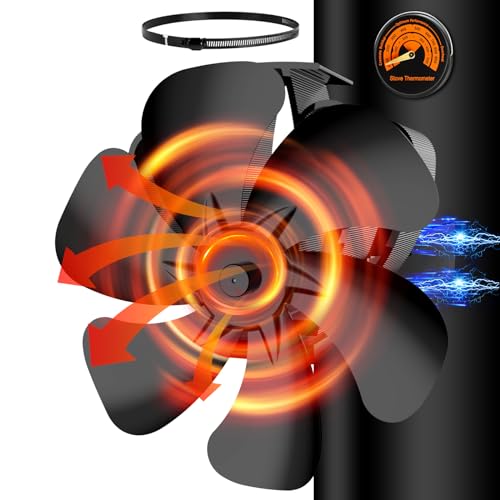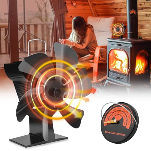 highsam Kaminfläkt, 6 blad Fläkt för öppen spis, Tyst Ugnsfläkt utan el med termometer, Värmedriven Kaminfläkt för trä/öppen spis/vedspisar