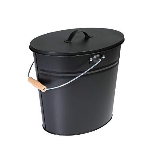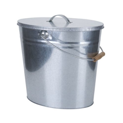 Kamino-Flam Zink askhink med lock – liten kolhink 15 l – förzinkad kolhink – zinkhink/asksoptunna som eldstadstillbehör, för grill och kol