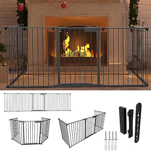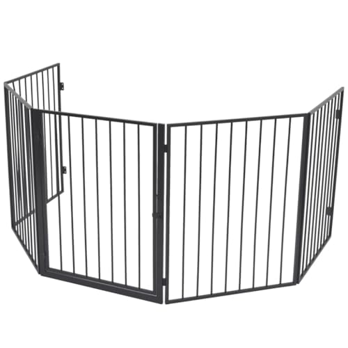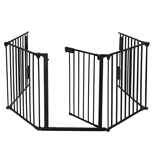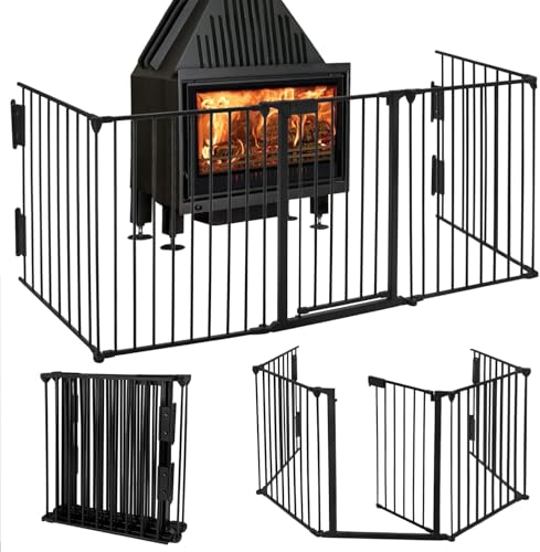 Ansobea Kaminskydd med dörr i metall 304 cm | vikbart ugnsgaller | 5 delar djurskyddsgaller och barntrappskydd (svart)