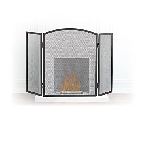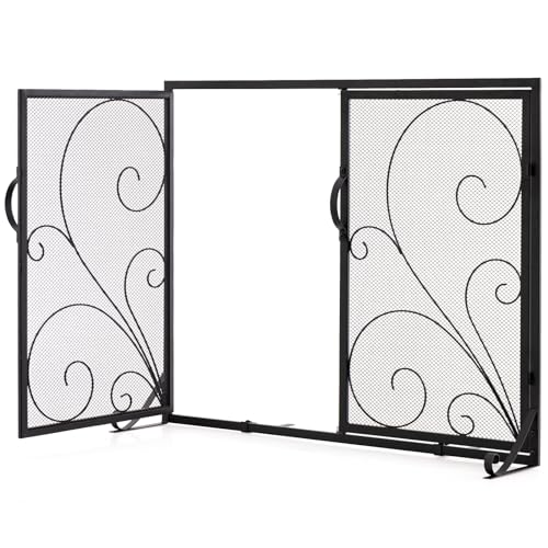 LIFEZEAL Gnistskydd för vedspis, eldstadsskydd, kaminskydd, 3-panel grill, skärm med dörrar, handtag, metall, dekorativt nät, 96 x 35 x 78 cm, svart