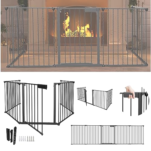 Froadp 75 x 60 cm, kaminskydd med dörr, 5 delar, valputlopp lekhage, fällbart barnskyddsgaller, 300 cm, dörrskyddsgaller i metall, ugnsskydd, barnsäkring, avstängningsgaller