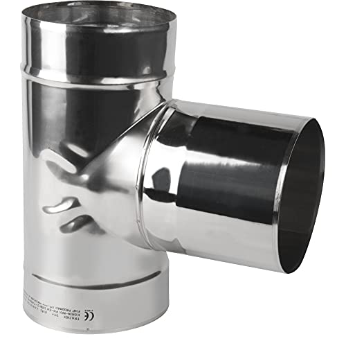 Kolor Rostfritt stål Rökrör, kaminfäste, ugnskni, avgasrör, rosett, regnhatt, rör, båge, T-del, kaminskydd, basplatta (DN 120 mm, T-stycken)