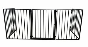 Tubiaz GOGO7109 Kaminskydd med dörr, 304 cm, djurskyddsgaller, barnskyddsgrind, 5 delar, ugnsskyddsgaller, öppen spis, spisgaller, dörrskydd för barn och husdjur, Svart
