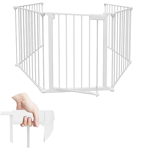 Joparri Kaminskydd med dörr, 310 cm, metall, ugnsskyddsgaller, lekhage, avspärrningsgaller, djurskyddsgaller, dörrskydd för barnsäkring, 5 delar (65 x 75 cm) vit