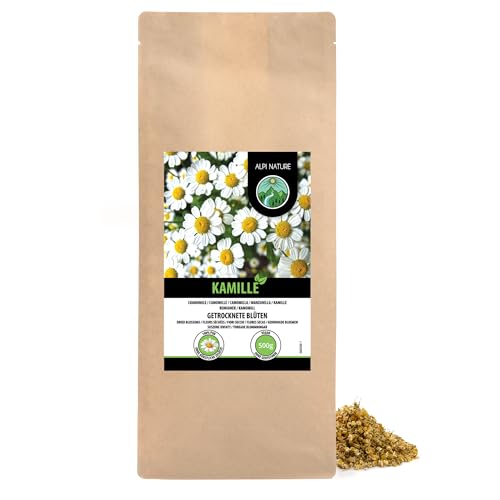 Alpi Nature Kamomillte (500g), kamomillblommor, kamomillblommate, hela blommor, försiktigt torkat, 100 procent rent och naturligt för att tillaga te, örtte, kamomillte