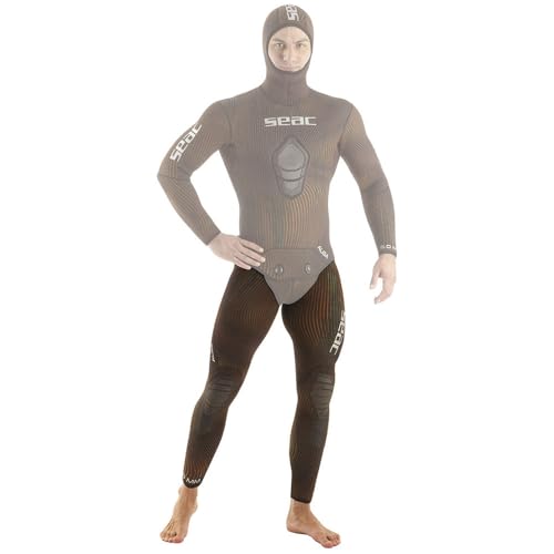 SEAC Byxor 5 mm, tång, hög midja undervattensfiskebyxor, våtdräkt i två delar, kamouflage, splittrad stretch för män, brun kamouflage, L