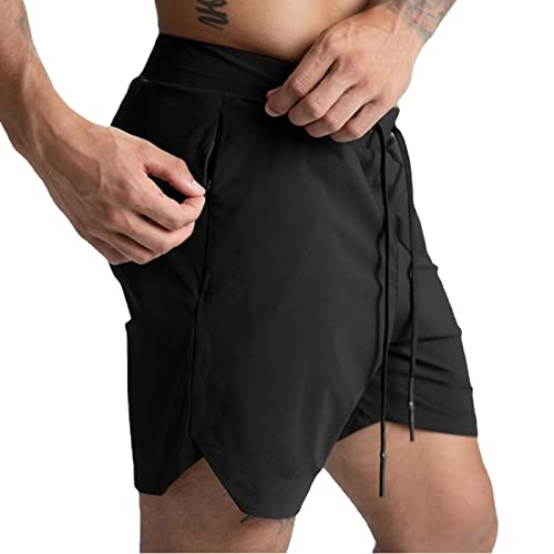 XDSP Sportshorts för män korta byxor snabbtorkande sportbyxor snabbtorkande löpshorts gym träningsshorts kort snabbtorkande blixtlåsficka, kamouflage grå, svart, L