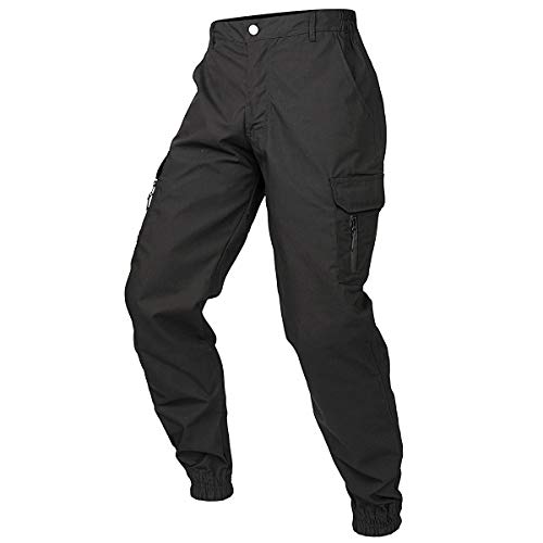 CARWORNIC Mäns kamouflage taktiska byxor vattentäta lätta ripstop utomhus vandring avsmalnande cargobyxor, Svart, 42 SE