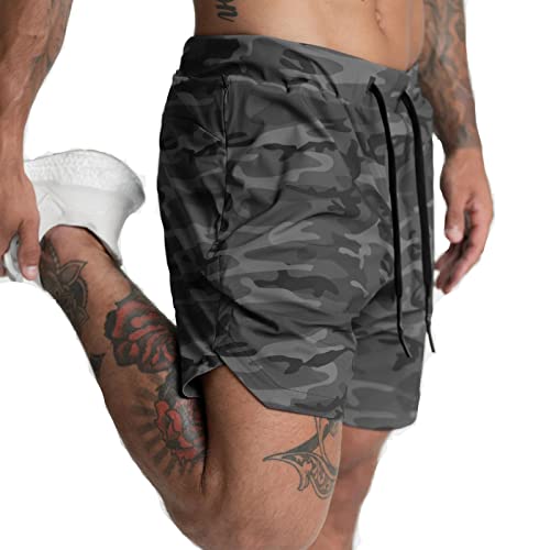 XDSP Shorts Män Löpning Andas Sport Shorts Snabb Torkning Byxor, Kamouflage Grå, M
