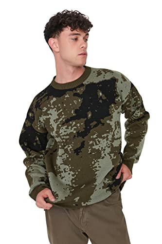 Trendyol Herr rund hals kamouflage smal tröja sweatshirt, khaki, XL, Khaki, XL