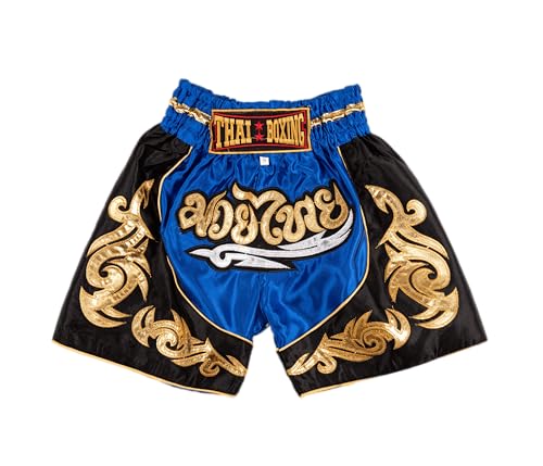 MUAY NATION Muay Thail-shorts för barn (2 år – 12 år) flickor pojkar boxbyxor för kickboxning MMA kampsport, blå, 9-12 år