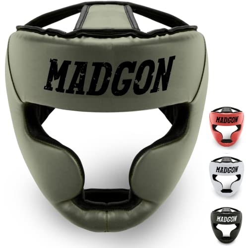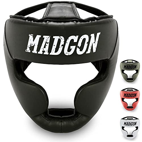 MADGON Kampsport Huvudskydd med Otrolig Stötabsorbering! Heltäckande Huvudskydd - Perfekt Synfält och Minimal Svett - Hjälm för Kampsport, MMA, Boxning, Kickboxning, Sparring - Väska Ingår!