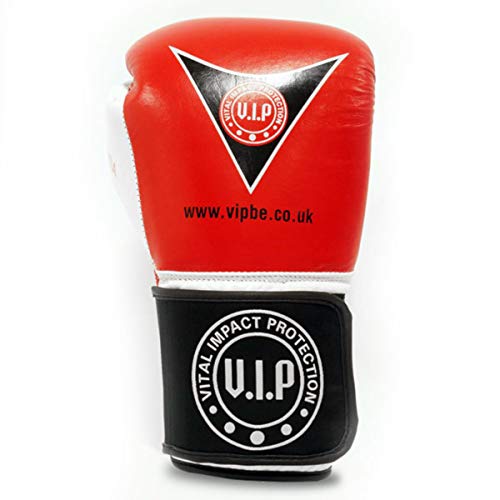 VIP Vital Impact Protection Potentia Läder Boxningshandskar MMA kampsport fitness mellanliggande sparring handskar vantar, röd/vit, 414 ml
