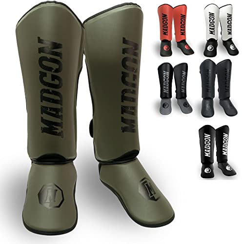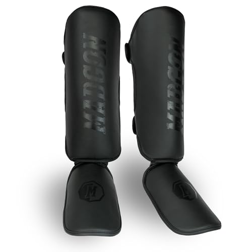 MADGON Benskydd med Perfekt Passform оch Perfekt Vaddering - Benskydd för Mindre Svettutveckling - Benskydd för Kampsport, MMA, Kickboxning + Väska - Benskydd Thaiboxning