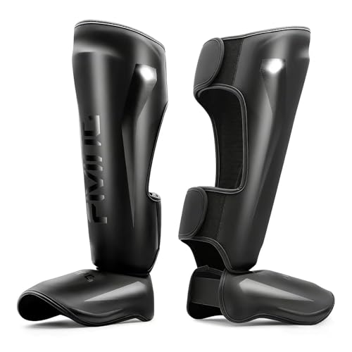 FIVING MMA Kampsport skenbensskydd – vadderad, justerbar thailändsk boxskenbensskydd, med spännskydd, lämplig för taekwondo/blandad kampsport träning och sparring (M, svart)