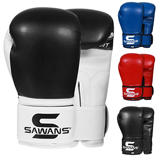 Boxningshandskar, handskar för kickboxning, MMA, kampsport, Muay Thai, sparring, tung boxningssäck, juniorträning, slag, fighting, handskar för vuxna, storlek 4, 6, 8, 10, 12, 14 och 16 oz, för män, kvinnor och barn (4 oz, svart/vit)
