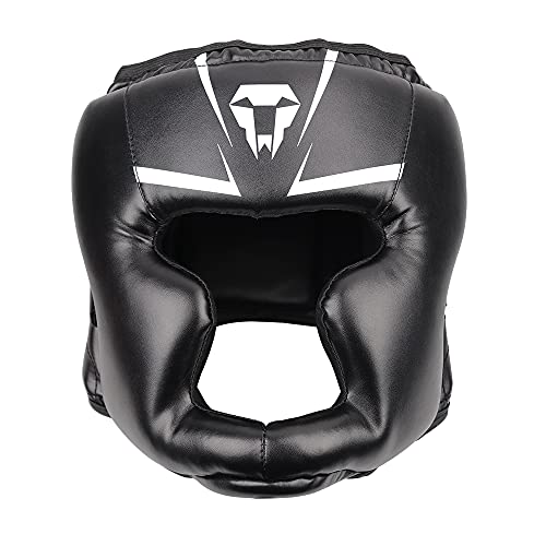 LangRay Boxning huvudskydd för vuxna, läder boxhjälm thaiboxar ansiktsskydd hög slagdämpning med perfekt sikt och bra svettabsorption för kampsport MMA boxning sparring, svart, L